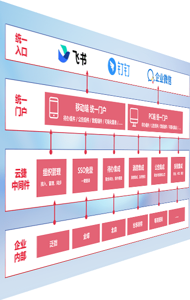 对协作平台提供支持服务,,,支持企业应用与协作平台对接,,包含组织同步、、、消息集成、、、、待办集成等。。。支持目前主流的协作平台:钉钉、、、企微和飞书。。。。